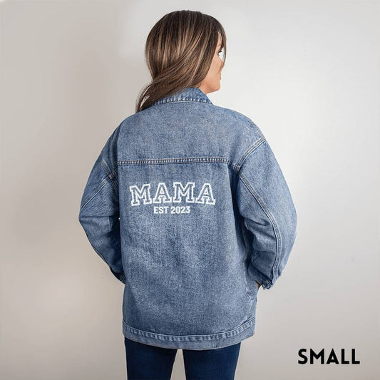 Oversized Mama Boyfriend-Cut Denim Jacket with Custom Year