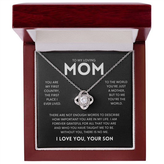 To My Loving Mom, You're the World - From Your Son - Love Knot Necklace
