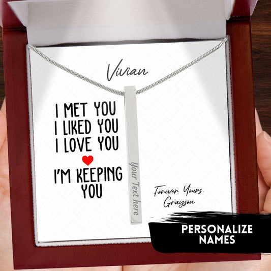 Custom Engraved Bar Necklace – Like You, Love You, Keeping You