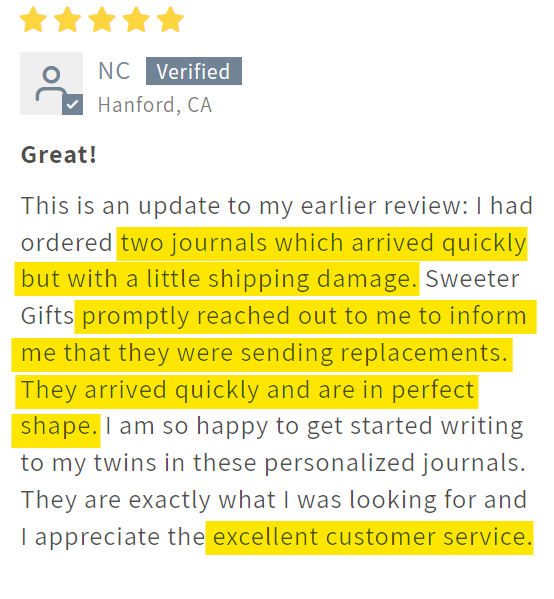 We understand receiving a damaged order can be frustrating. In the rare instance that it happens, we're here to help resolve the issue swiftly.