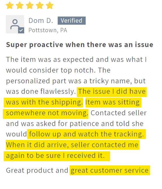 *Custom, made-to-order items require time and attention. Occasionally, additional processing time may be required, or if an item doesn't pass a quality inspection, it might need extra time to be remade.