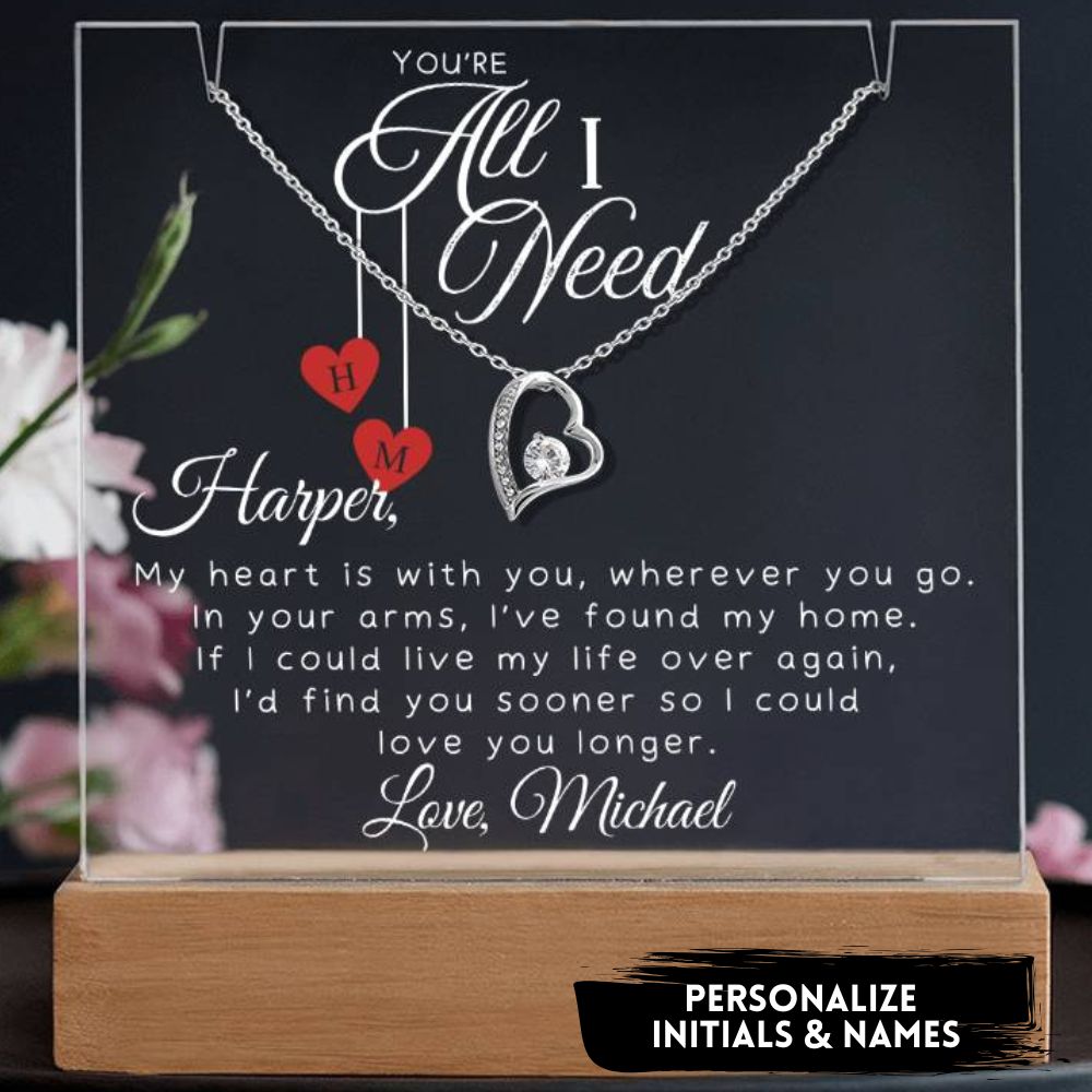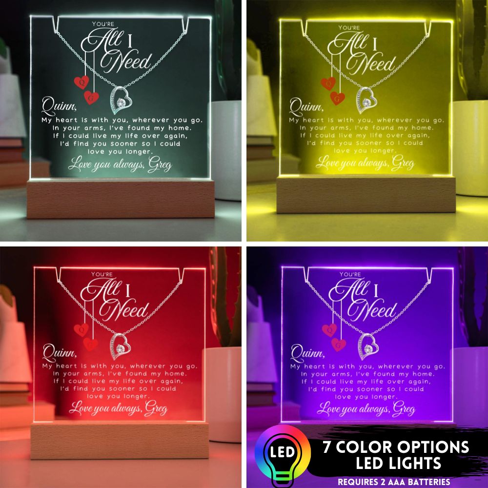 You're All I Need Necklace and Personalized Lighted Keepsake Stand