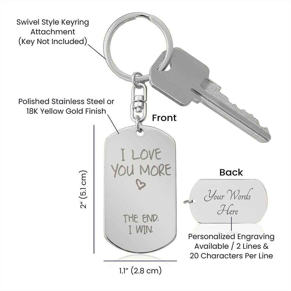 I Love You More 🤍 The End. I Win. Funny Personalized Gift - Engraved Dog Tag Keychain