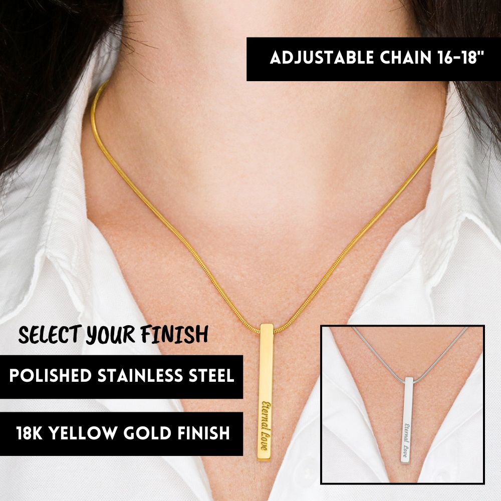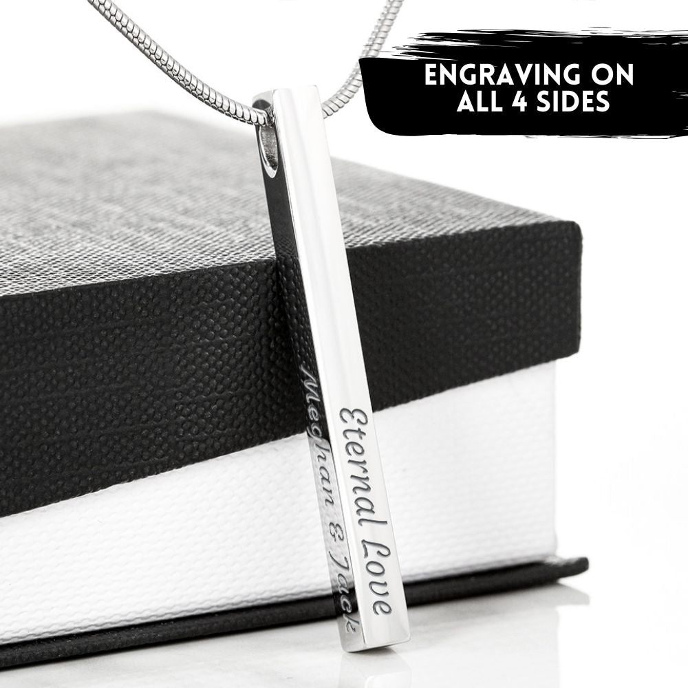 From the moment you met, to the love you share today—this gift captures it all. This custom-made necklace isn’t just jewelry; it’s a way to carry your story, engraved with the names, dates, or words that mean the most on all four sides.