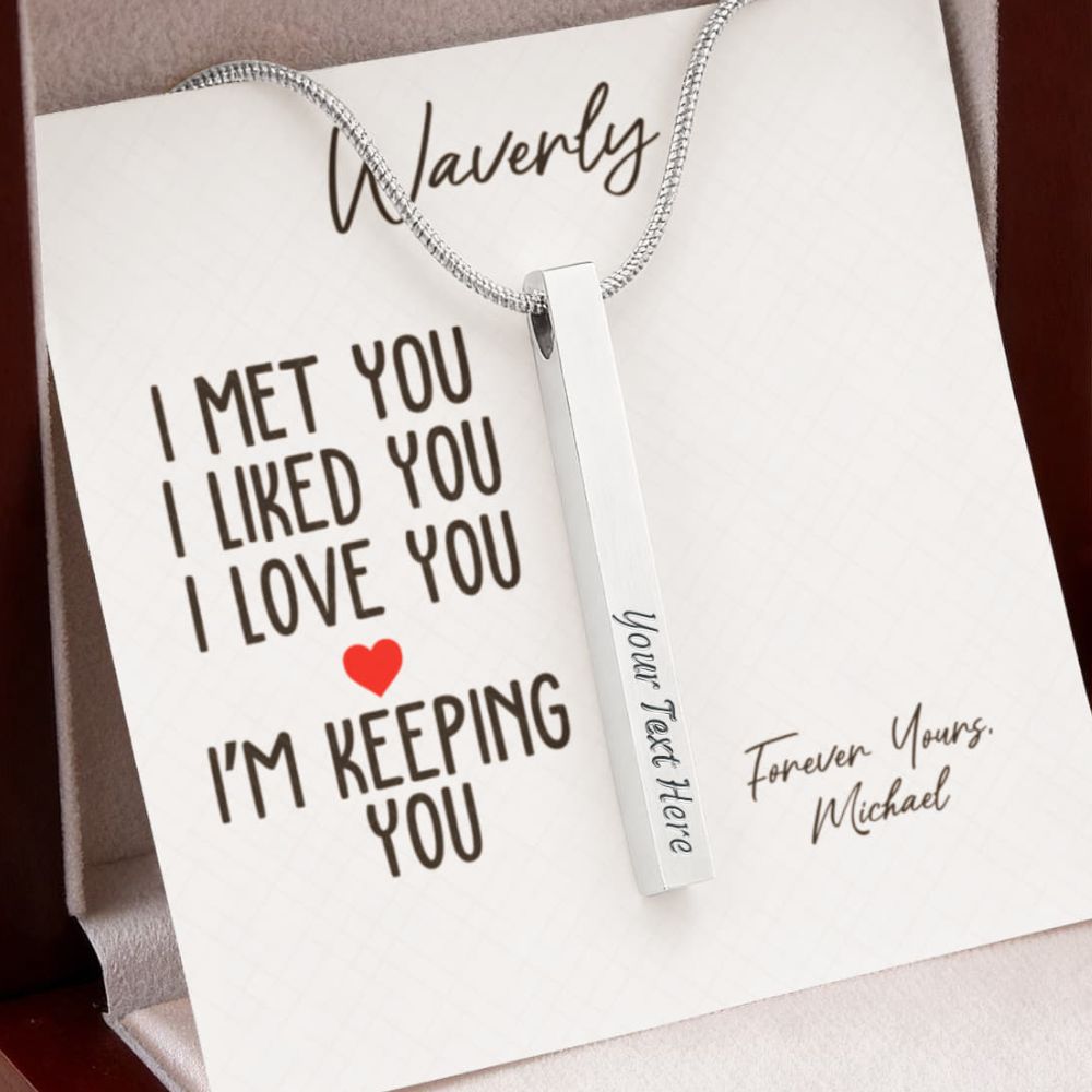 Custom Engraved Bar Necklace – Like You, Love You, Keeping You
