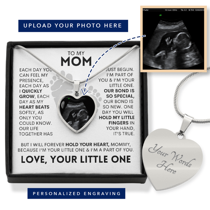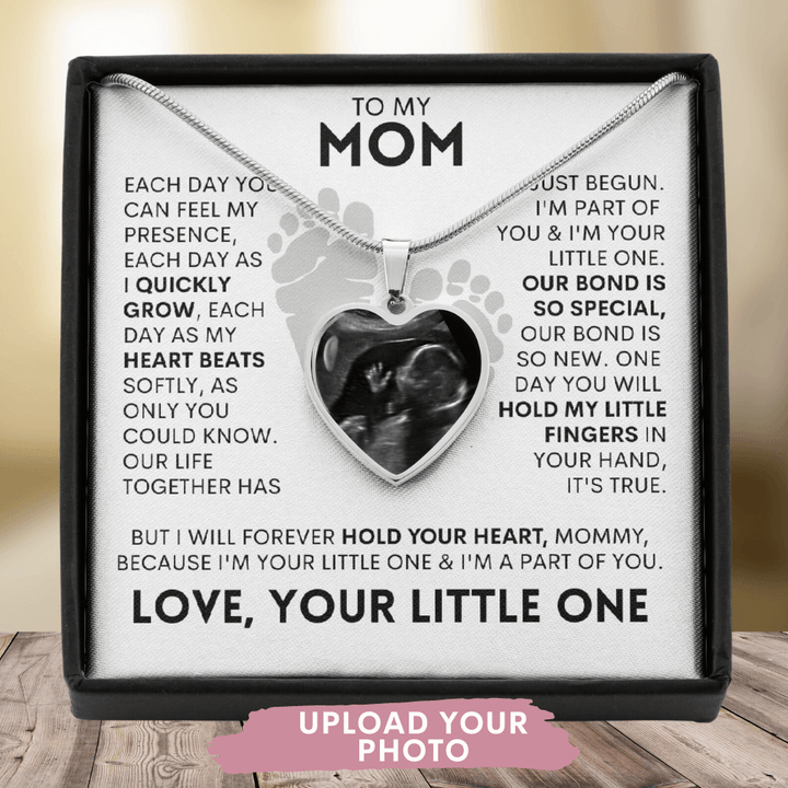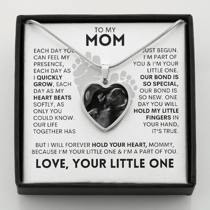 "Each day you can feel my presence, each day as I quickly grow, each day as my heart beats softly, as only you could know. Our life together has just begun. I'm part of you & I'm your little one. our bond is so special, Our bond is so new. One day You will hold my little fingers in your hand, it's true. But I will forever hold your heart, Mommy, because I'm your little one & I'm a part of you."