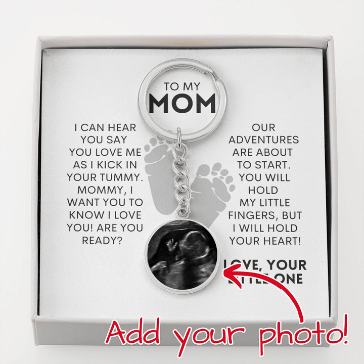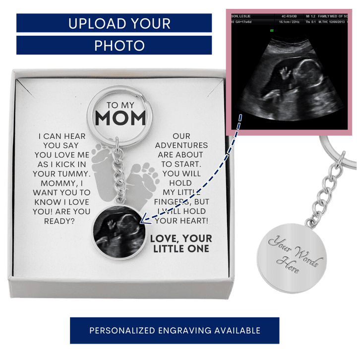 Can you imagine the look on her face when she opens this? This best-seller personalized circle photo keychain is the perfect keepsake for an expectant mother or a first Mother's Day present.