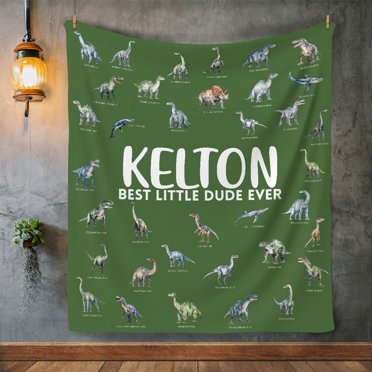 This unique, made-to-order cozy blanket is a perfect gift for the little dino fan in your life. You personalize it and they get to feel your love while wrapped up in it, playing on it, or snuggling under it.