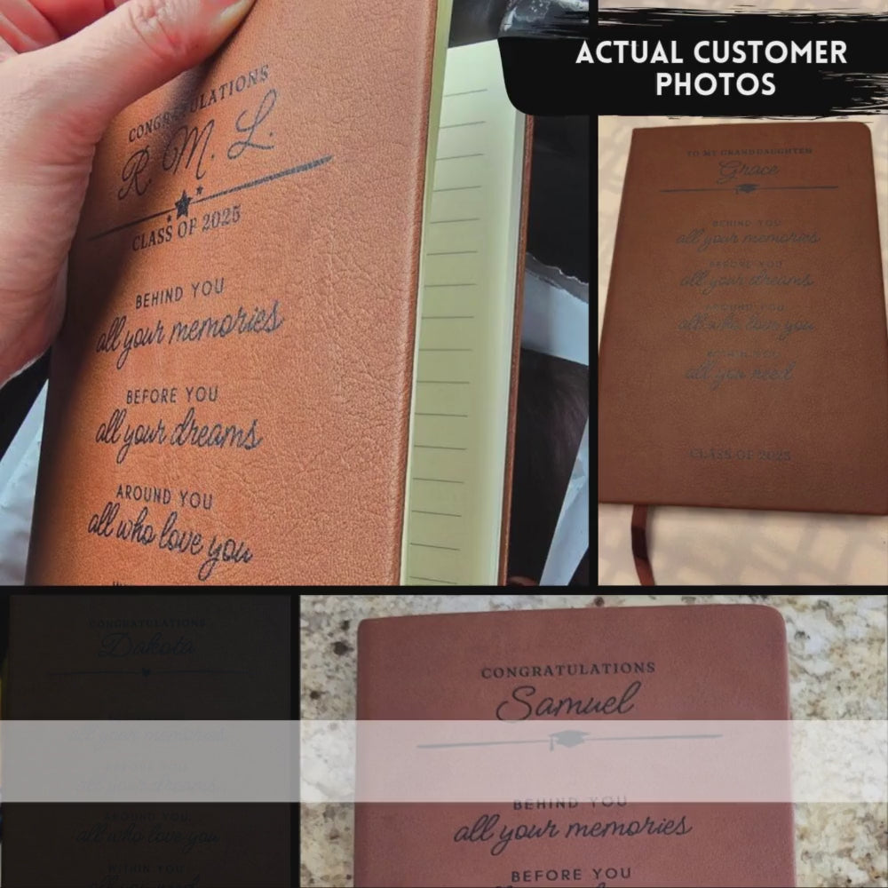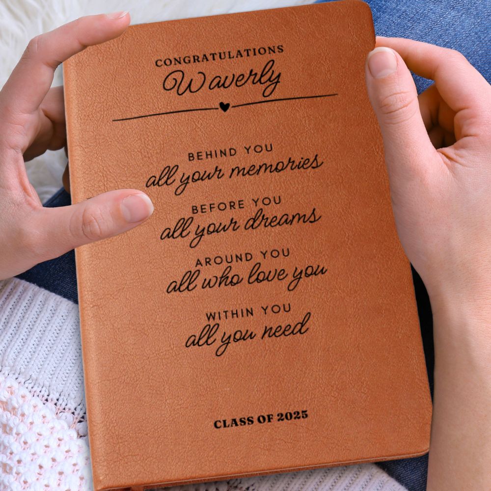 Featuring your graduate’s name, class year, and a heartfelt quote on the cover—“Behind you all your memories, before you all your dreams, around you all who love you, within you all you need”—this journal becomes a treasured symbol of encouragement and love.