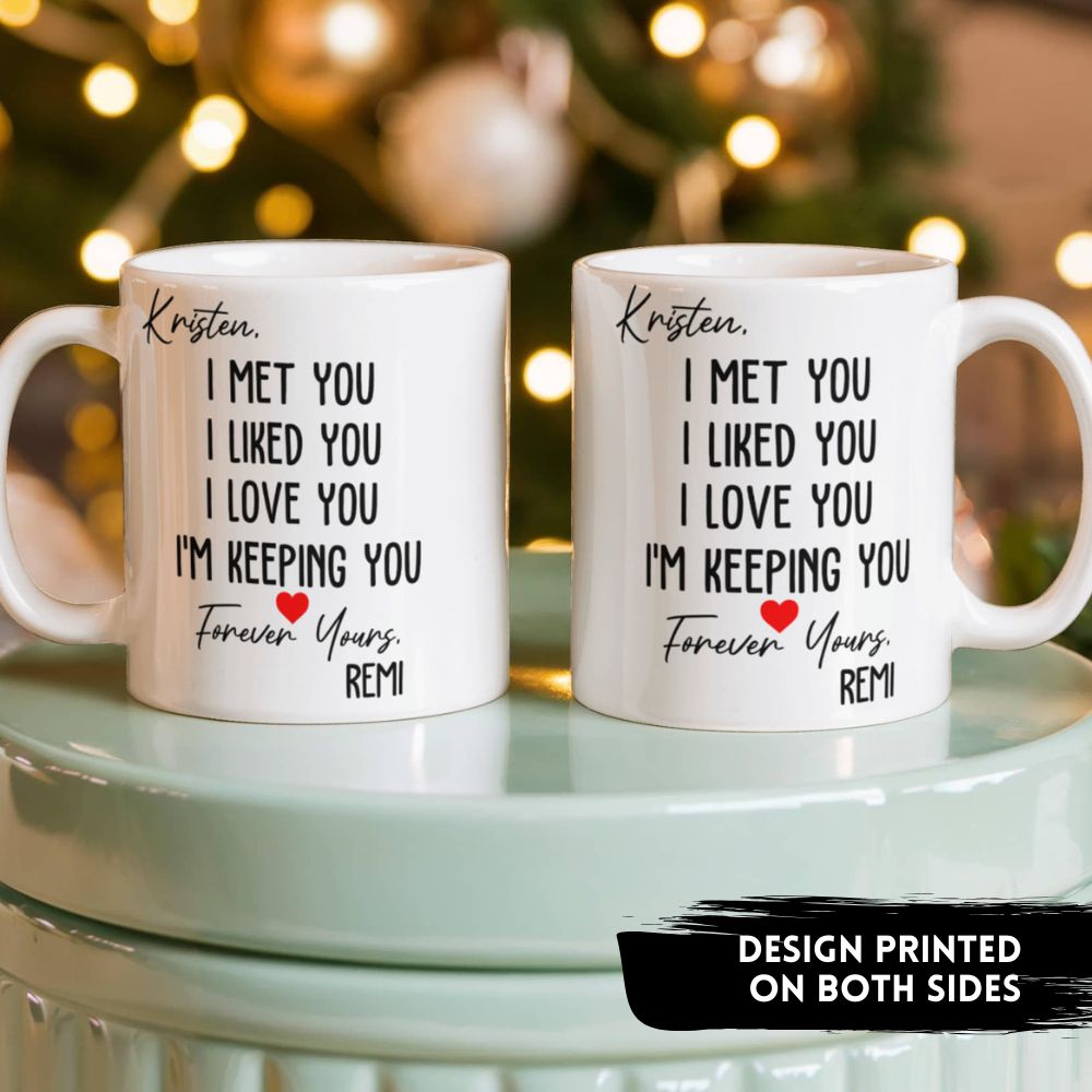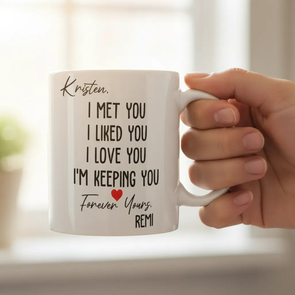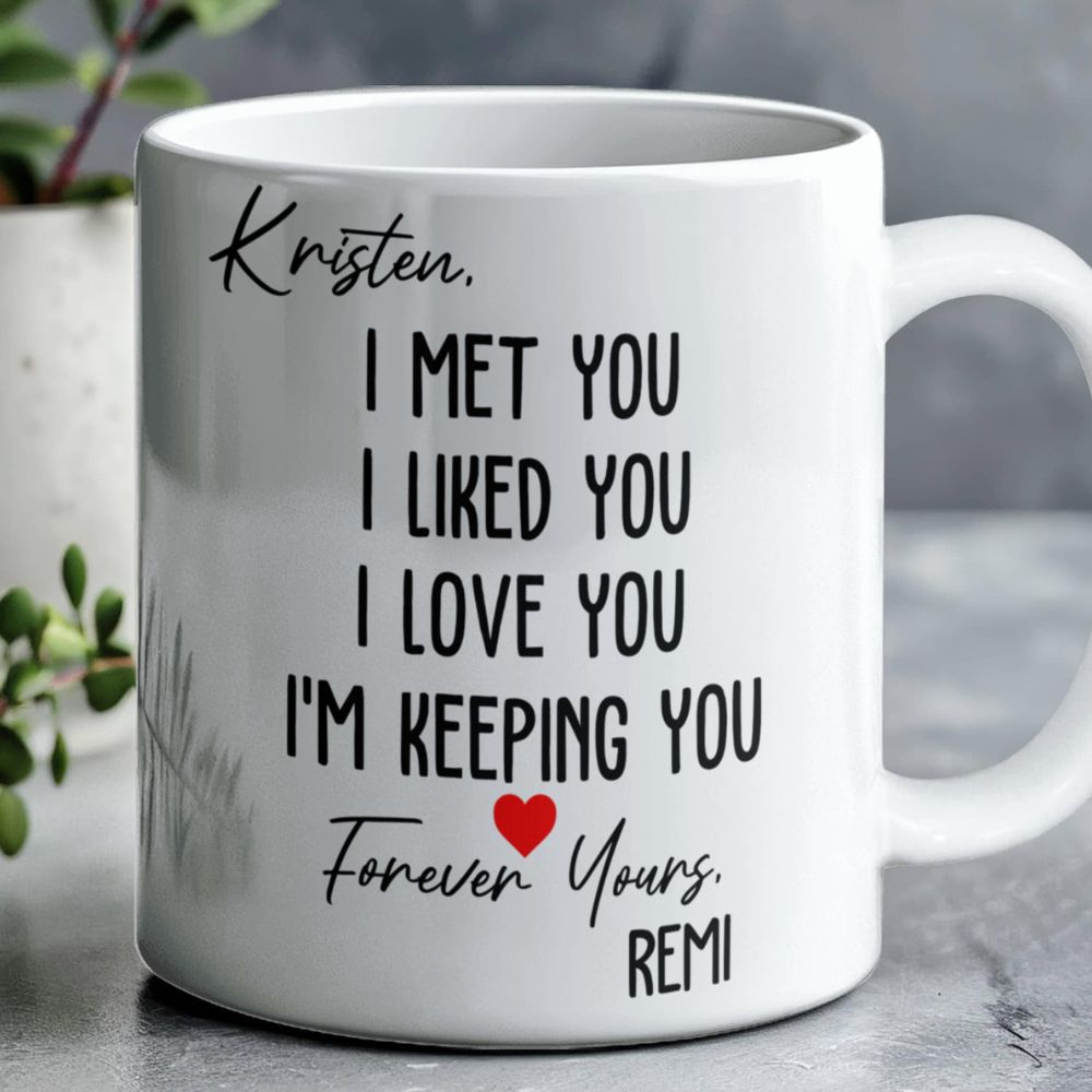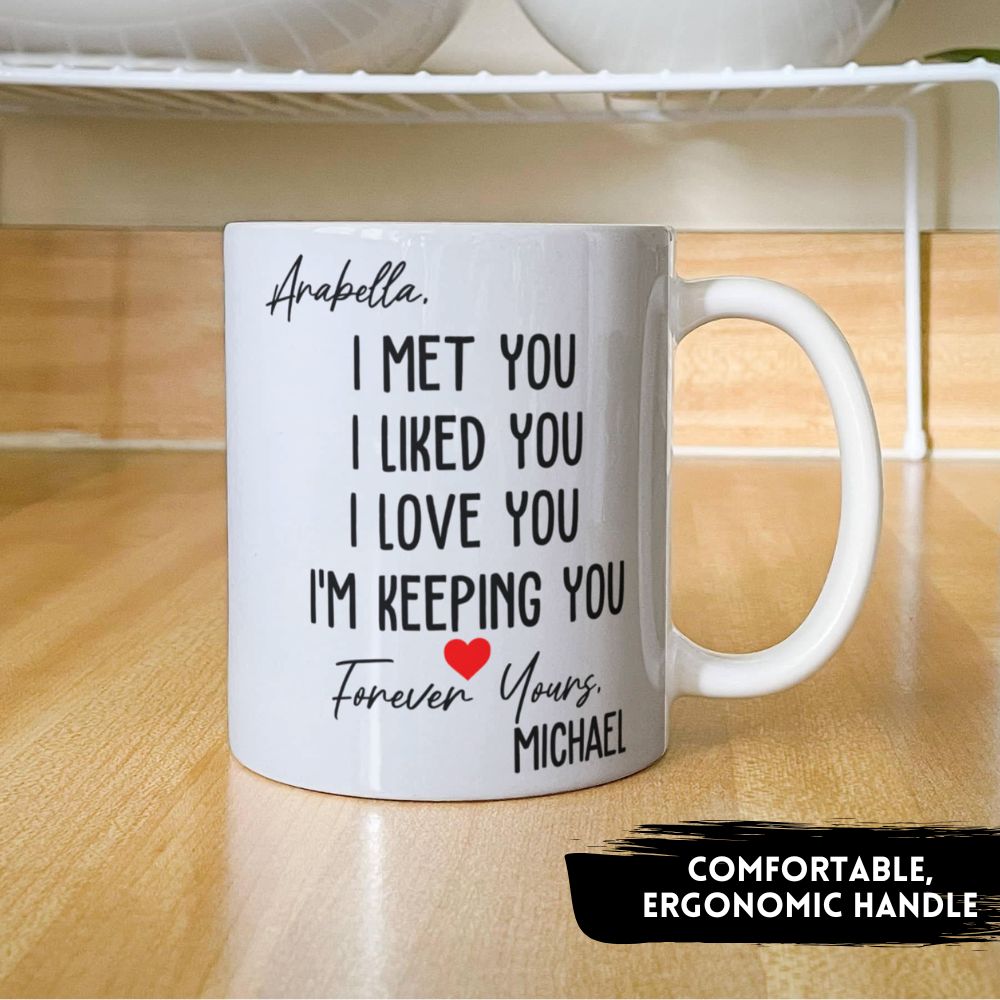 Love has a way of starting with a spark and growing into something you never want to let go. This personalized 11 oz. mug is the perfect way to tell your partner exactly how you feel—with humor, heart, and a forever promise.